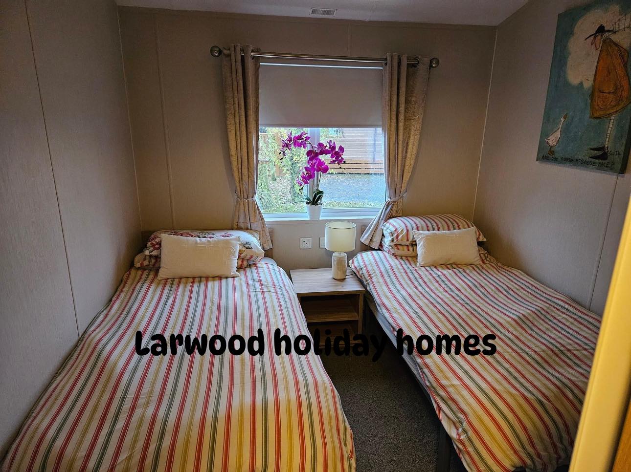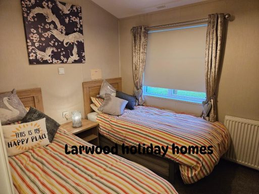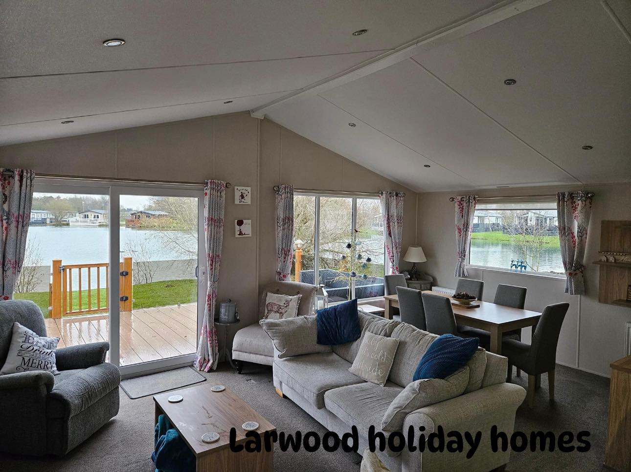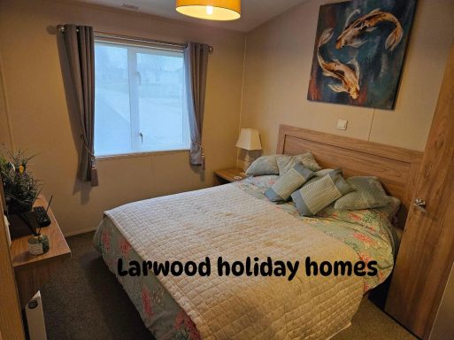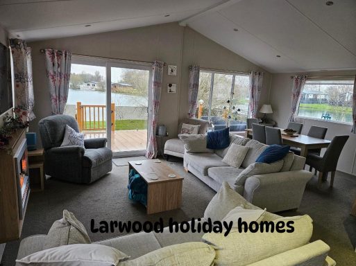 perfect positon on osprey lake based on the fairways this large lodge has 3 bedrooms 1 x double & 2 twin rooms plus pull out sofa bed .